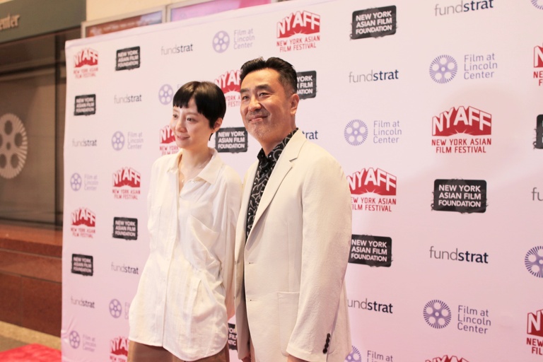 Director Cho Eun-ji and actor Ryu Seung-ryong on the NYAFF red carpet ahead of the North American premiere of their new film, Perhaps Love. Credit: Jo Yin.