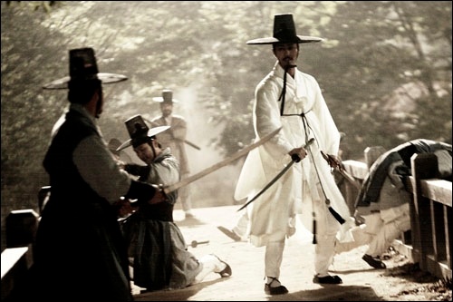 It's a powerhouse three-way team-up. Lee Joon-Ik, director of King & the Clown, the top grossing Korean movie of all time, returns to the Joseon Dynasty for the first time since K&C. Hwang Jung-Min, an actor who was originally told he was too ugly to be in movies, but who has gone on take home eight "Best Actor" awards in nine years, is cast as the movie's hero, a blind swordsman. And then there's the source material, the Korean manga, Like the Moon Escaping from the Clouds which was awarded the Republic of Korea Cartoon Culture Literary Prize in 1996. The result? A muscular blockbuster with impeccable style.