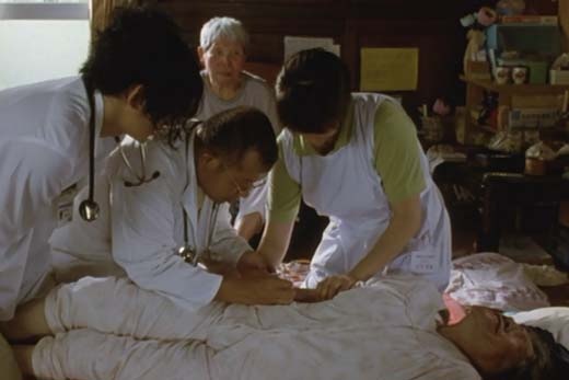 A distant figure waving from across a windswept field, a white lab coat discarded on the side of the road, pockets of air hissing through punctures in a suffocating man's chest - these stunning, cryptic images are all components of a cipher for cracking the code at the heart of Dear Doctor, a sun-drenched anti-mystery about necessary systems and everyday self-deceptions. Deep in the drowsy summers of remote Kamiwada Village, kindly Dr. Ino (Tsurube Shofukutei) has disappeared without a trace, leaving behind a taciturn staff, a traumatized populace, and no shortage of difficult questions. Without Ino to shepherd the village's one hundred and one geriatrics, the town's very equilibrium threatens to collapse. "The doctor is God!" one distraught pensioner cries, and in his situation he's not far off. But how well do any of us really know God, anyway? Has anybody checked his references?