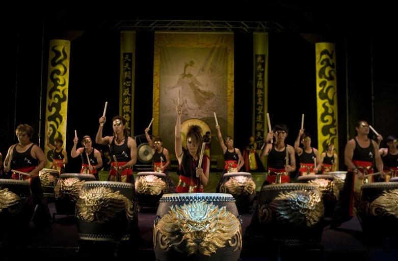 Based on the true story of the Chio-Tian Folk Drums & Arts Troupe, Din Tao begins in failure. A-Tai has gone to Taipei to become a rocker, but he’s a born quitter, and returns home, blustering that he’s going to America to become a rock star Any Day Now. His disciplinarian daddy runs a crummy, second-rate Din Tao troupe, and he and A-Tai’s relationship is all loveless, raging arguments. But after a brawl with a rival Din Tao troupe (run by his dad’s nemesis, Wu Cheng) A-Tai’s pride is at stake and he vows to go toe-to-toe with Wu Cheng’s troupe and beat their butts.