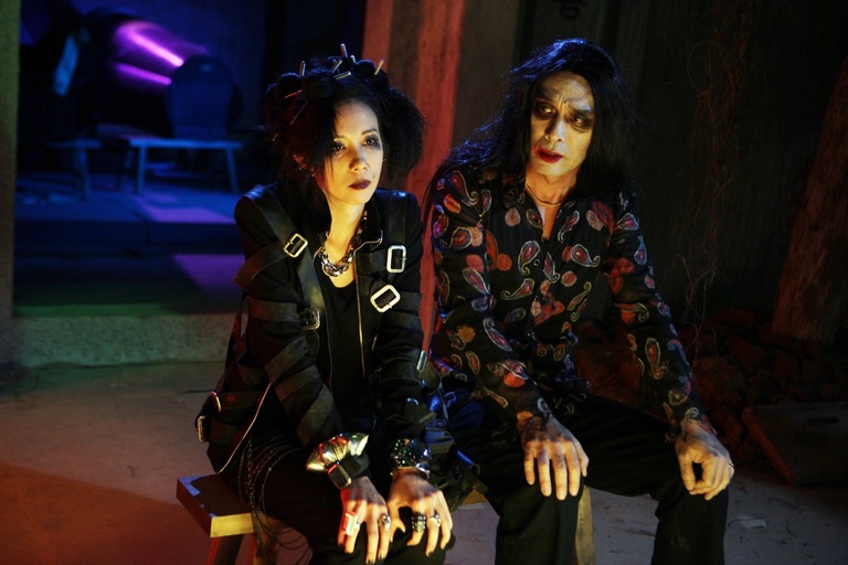 In East Meets West 2011, Karen Mok plays a cynical punk whose dad is Kenny Bee, former guitarist of Hong Kong 70’s supergroup, The Wynners (played by the actual Kenny Bee, former guitarist of Hong Kong 70’s supergroup, The Wynners). Bee is broke, reduced to working as a zombie in a haunted house. When his second wife, Crystal, goes on the run after embezzling all the money fronted by a slick businessman (played by Eason Chan) for a Wynners reunion concert, Kenny and Karen head to China to rescue her, and there they discover that they, along with five other strangers, are the reincarnation of the superpowered Seven Heavenly Dragons of Chinese legend, who reunite every few centuries to battle the eighth dragon, the evil Yaksha. And now, Yaksha is on the move.