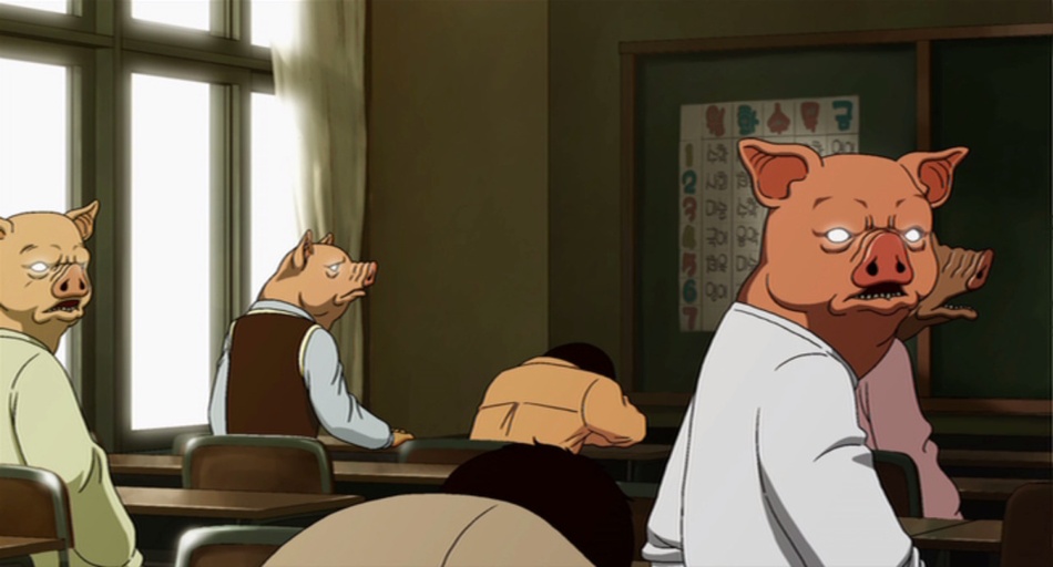 The King of Pigs’s animation style evokes memories of the great Satoshi Kon (Paprika), sinuous yet rippling with organic textures that mimic the flesh and failings of real, flawed human beings, with every tear, bruise, and knuckle to the face meticulously rendered. One thing the film never allows us is too much room to breathe: these kids are suffering, and so must the audience. Every moment is tripwired, every scene is a time bomb. In keeping with the film’s thematic resonance, the adult and child Jong-Suk are voiced, respectively, by Yang Ik-June and Kim Kkobbi, the stars of NYAFF 2009’s harrowing Breathless.