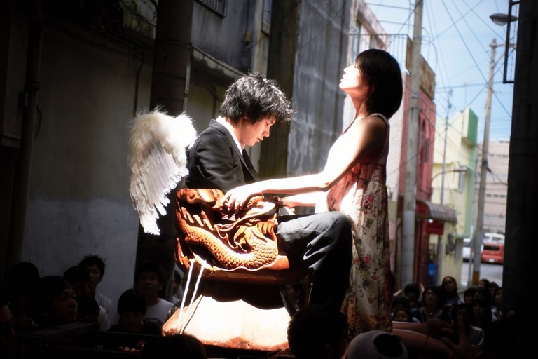 Fresh from this year’s Berlinale competition, like Wim Wenders’ Wings of Desire done via Japanese pop sensibility, Chasuke’s Journey follows a celestial tea server Chasuke – portrayed by versatile Matsuyama Kenichi (Death Note, Norwegian Wood) – as he descends to Okinawa in order to save a young girl Yuri (Ono Ito) from her fate scribed by heavenly hacks who crib from Hollywood blockbusters. The writers promise to transmit signs through the rich tapestry of characters he meets along the way, but Chasuke only has until 8:50pm, at which time Yuri’s fate is sealed. A meta-narrative on cinema, creation, fate, celebrity and enjoying ramen while you can, Chasuke’s Journey is filled with loveable losers, wildly kinetic single-take running, improbable plot contrivances, and an absolute love of the moving image.