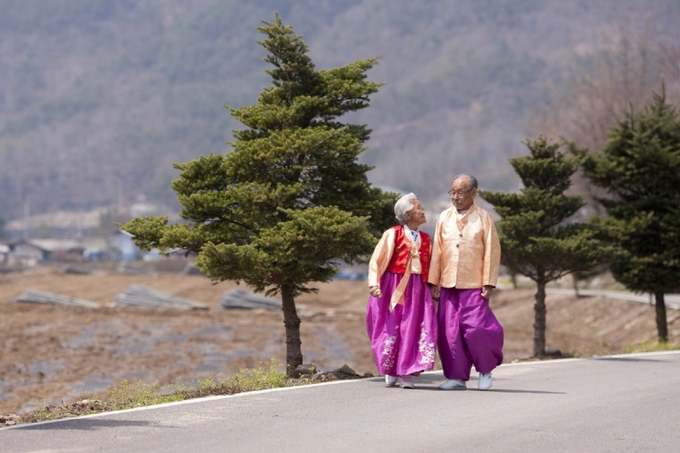They may be pushing a century, but Jo and Kang still know how to have fun, picking sunflowers for each other's hair in spring, clowning around amidst the falling leaves in autumn, having snowball fights in winter. "I look old and gray but you haven't aged a day," Kang marvels, but the weight of encroaching of time is clear. Their lives are encapsulated in a series of simple, beautiful moments: a weathered hand caressing a face, buying baby clothes for the children they never got to raise. You'll never see another love story like it; you can only hope to be lucky enough to live it.