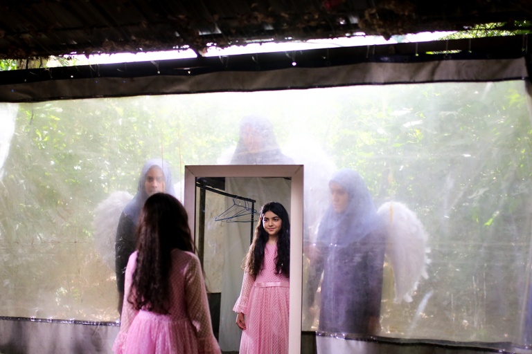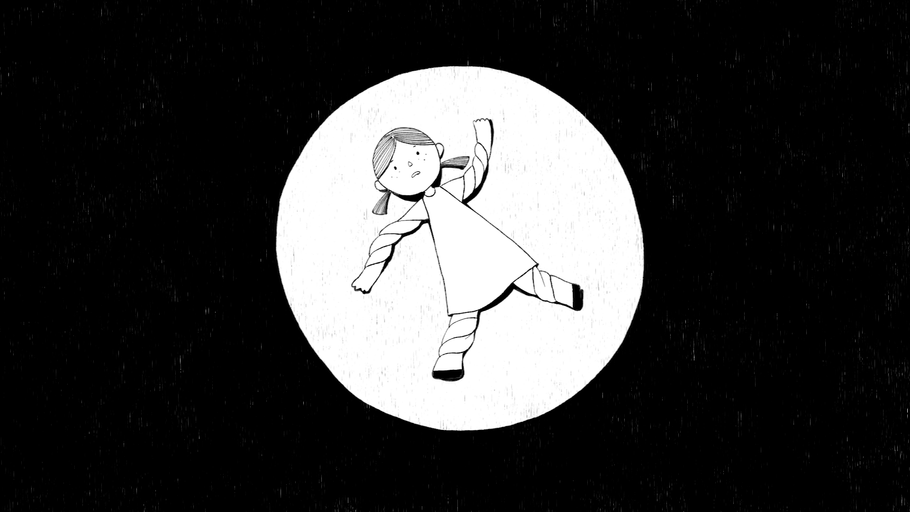 A child awakes with twisted limbs in an unknown space, facing danger; a fairy comes to her rescue.